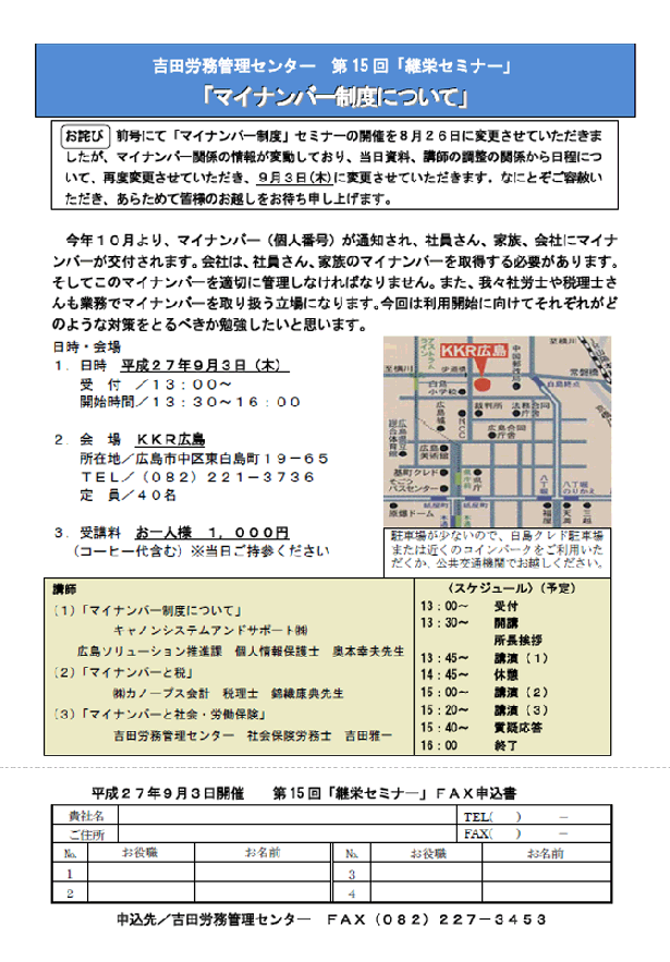 第15回継栄セミナー(平成27年9月3日木曜日)