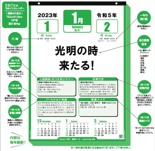 75 X 51.5cm の大きな日めくりカレンダーです。 |